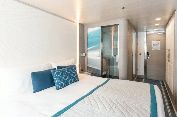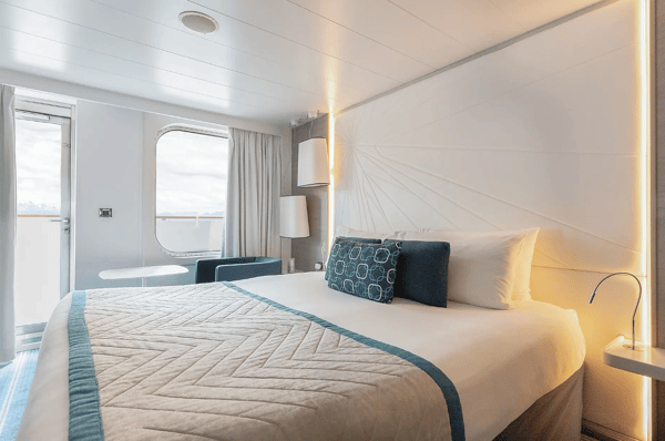 Elegant and inviting, the Deluxe Stateroom features a private balcony, comfortable seating area and contemporary décor. With a relaxing bathroom and ample storage, it offers a stylish retreat after days exploring ashore.