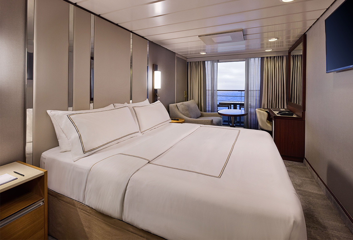 On the newer Allura-class and O-class ships, Oceania’s standard verandas range from 26 to 29 square metres (282 to 312 sq ft), which is generous for this market segment. Cabins are well-appointed with quality bedding, marble bathrooms, and thoughtful storage. Suites are significantly larger and come with butler service. On the older R-class ships, cabins are noticeably smaller (around 15 to 16 square metres for an inside or ocean view), reflecting their late-1990s origins.