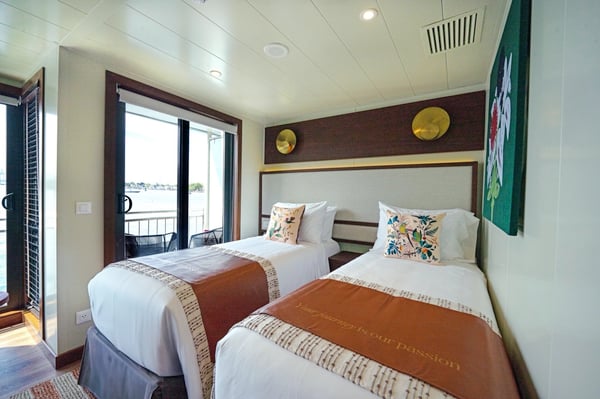 A comfortable retreat with large picture windows, elegant décor and a relaxing sitting area. These staterooms offer modern amenities and river views, creating an inviting space to unwind after days exploring Colombia’s vibrant landscapes.