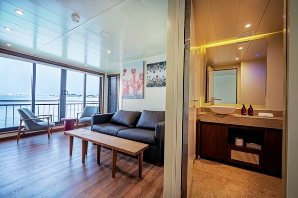 The most spacious accommodation aboard, the Grand Suite features a separate living area, French balcony, large bathroom and premium furnishings. Designed for indulgent river cruising, it combines comfort, privacy and elevated style throughout your voyage.