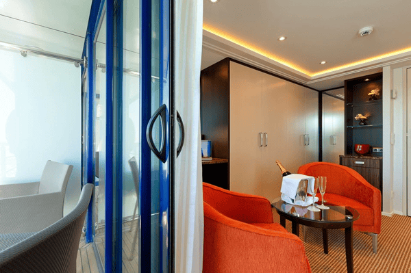Public areas include a panoramic lounge, a boutique, and a library. On the Sun Deck, guests can relax by the heated pool, enjoy a drink at the swim-up bar or stroll along the walking track.