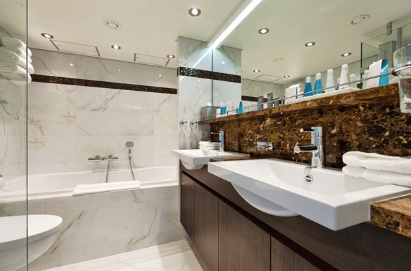 AmaSerena’s staterooms range from 170 sq. ft. to 350 sq. ft. Each cabin offers twin or French balconies, marble bathrooms and elegant furnishings. Suites feature separate sitting areas, dual balconies and premium touches such as complimentary laundry and enhanced amenities.