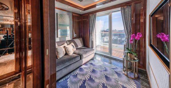 Experience your private residence at sea, where refined design and timeless luxury meet. Each suite offers generous living space, a king-size Cunarder bed, marble bathroom and private balcony. With butler service and exclusive access to the Queens Grill restaurant, every detail embodies Cunard excellence.