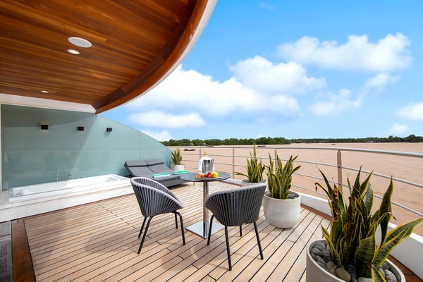 Emerald Harmony combines sophisticated design with Asian influences, offering contemporary luxury perfectly suited to the Mekong River’s scenic landscapes.