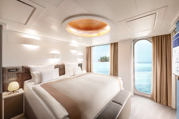 In the cabins and suites, curved lines, natural colours and premium materials come together in a harmonious room concept that promises – and delivers – pure relaxation.