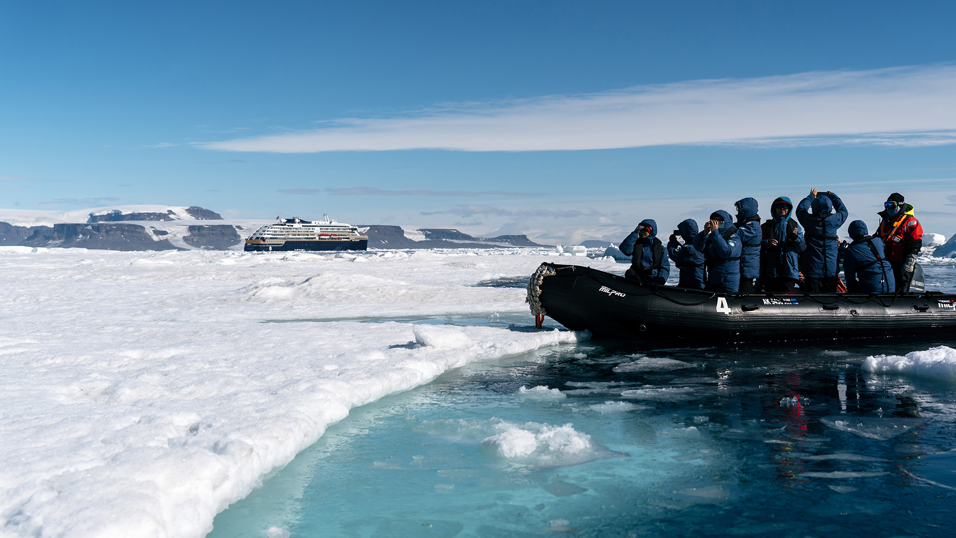 Once you reach the Antarctic Peninsula, every day brings something extraordinary. Zodiac cruises take you weaving between mountainous icebergs and hauled-out leopard seals. Shore landings bring you face to face with vast gentoo and chinstrap penguin colonies, while humpback and minke whales are a regular presence in the surrounding waters. HX’s expedition team of naturalists, marine biologists, and polar historians lead every excursion, ensuring each outing is as enriching as it is unforgettable.