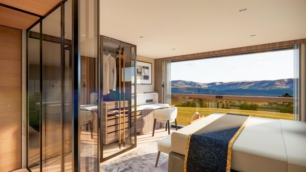 These 210-square-foot cabins located at the back of the Main Deck feature floor-to-ceiling windows, sash window balcony and quiet sleep sound cancellation system. The cabins each have a European king bed or two twin beds (configured upon request), a 55-inch smart TV, desk and chair, minibar, individual climate control, mini library and ample storage including two wardrobes. Amenities include Wi-Fi, unlimited tea/coffee, bathrobe and slippers, hair dryer and sustainable bath products in the ensuite bathroom.