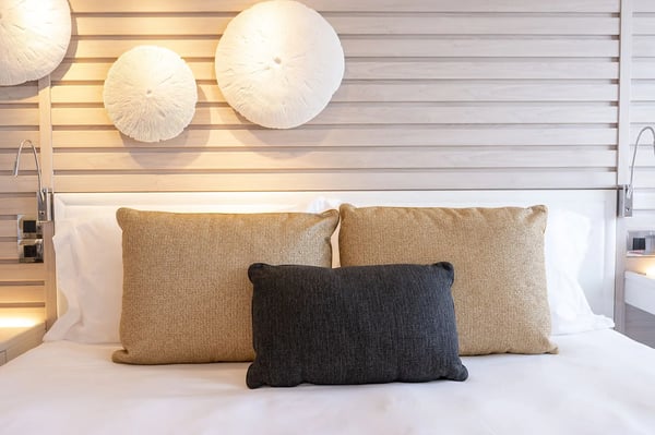 Elegant and light-filled, the Deluxe Stateroom features a private balcony, queen-size bed, ensuite bathroom and refined contemporary décor, offering a comfortable and stylish retreat after days of exploration.