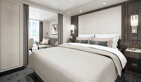 A private balcony to sip the beverage of your choice, a sitting area with a table for in-suite breakfasts, lavish bath products, a flat-screen TV… this suite has all you need to feel spoiled on an unforgettable voyage.
