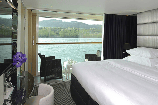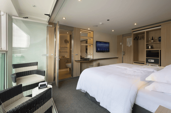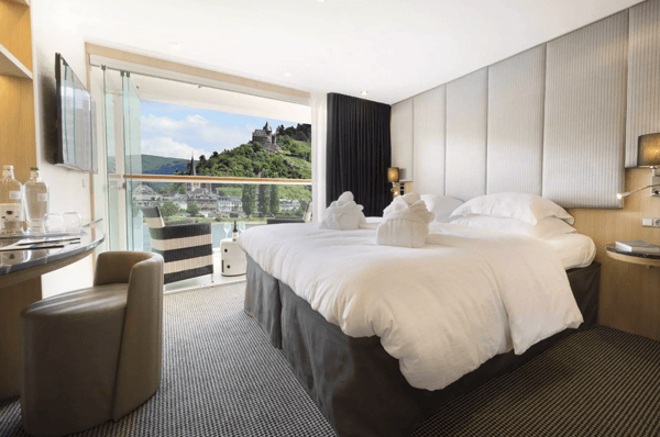 Balcony Suites on Scenic Jasper include the signature Scenic Sun Lounge, plush bedding and thoughtful amenities. With dedicated butler service and modern design, these suites offer a stylish and comfortable retreat for guests exploring Europe’s rivers with Scenic River Cruises.