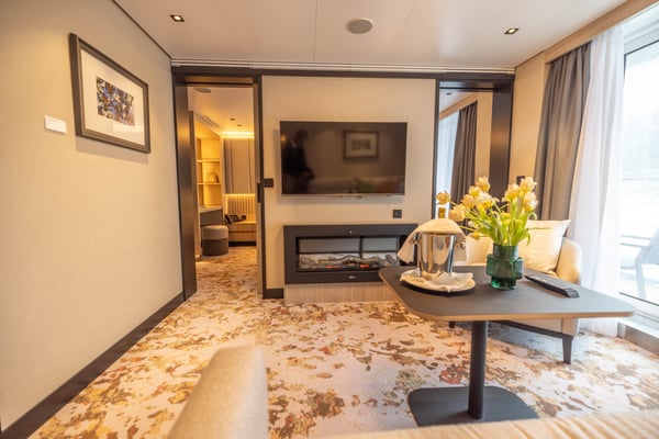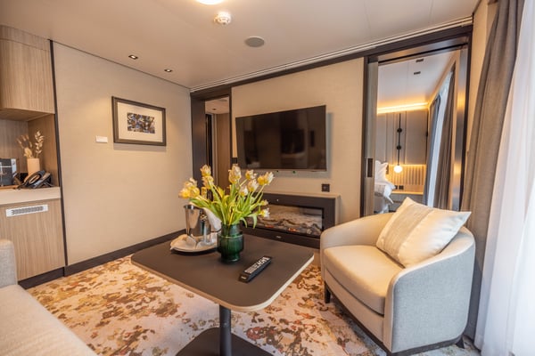 Premium Suites blend generous space with refined comfort, featuring a king-size bed, a separate living area, and a flame-effect fireplace. A luxurious ensuite with bath and shower, a walk-in wardrobe, and a private balcony complete the experience.