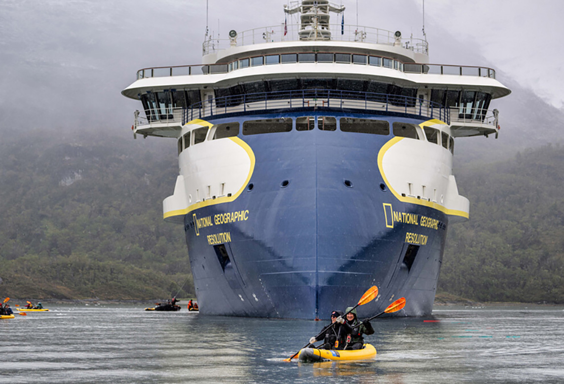 The fleet includes 21 ships, from the polar-specialist National Geographic Endurance and Resolution (PC5 ice class, 126 guests) to smaller vessels for Alaska, the Galápagos, and coastal expeditions.