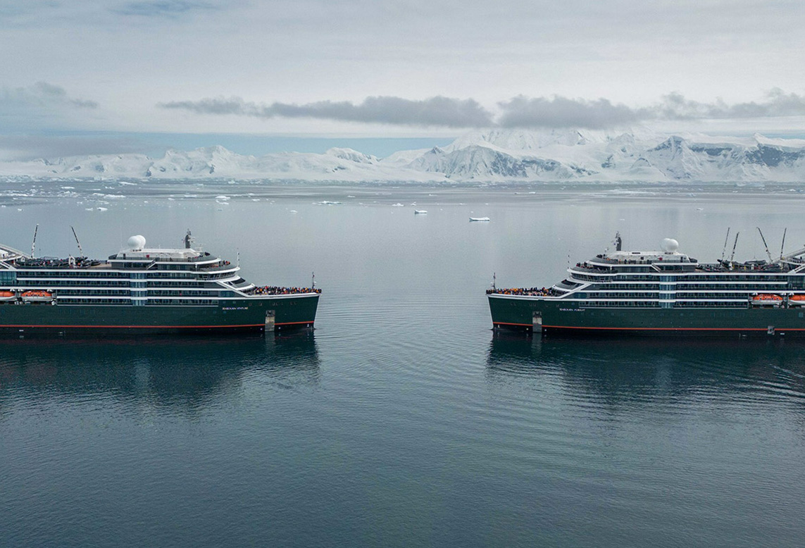 Seabourn’s expedition programme operates on two purpose-built ships: Seabourn Venture (2022) and Seabourn Pursuit (2023). Both carry 264 guests and are PC6 ice-class vessels with submarines (for polar and tropical deployments) and kayaks.