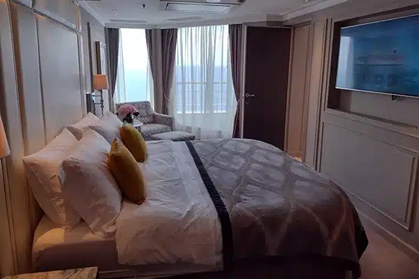 The plush new Saphire and Aquamarine veranda suites have been built where two, sometimes three staterooms had previously existed are 47 and 36 square metres, respectively. In contrast, the new 70 square metres Junior Penthouse grade has a separate pantry, dining, living and bedrooms, and large verandas.