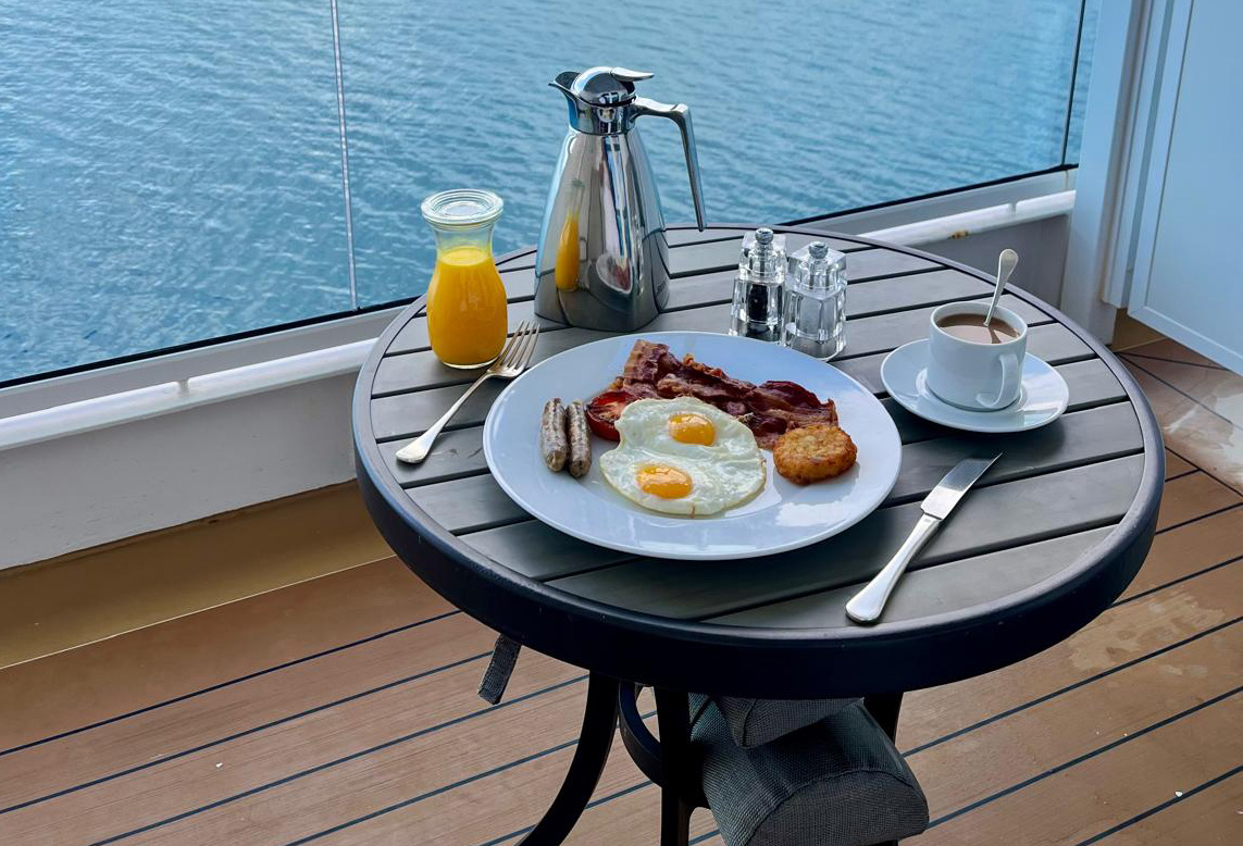 If you prefer a quiet evening on your veranda, the in-suite dining service is available 24 hours a day. During dinner hours, you can even order from the full menu of The Restaurant, and your suite steward will serve it to you course-by-course, complete with white linen and silver service.