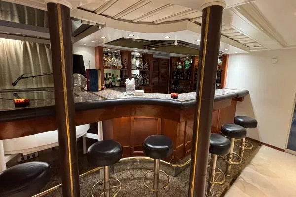 On Deck 4, you’ll find more outdoor space, the Piano Bar, and a small casino if you fancy trying your luck at blackjack or a card game. This deck also houses the SeaDream Spa, which offers multiple treatment rooms, and a surprisingly well-equipped fitness centre given the yacht’s intimate size.