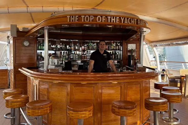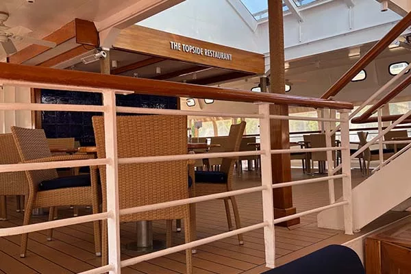 Decks 5 and 6 are where the outdoor experience really comes into its own. The open promenade is ideal for stretching your legs, and the Topside Restaurant offers a light, breezy setting for relaxed dining. At the very top, you’ll find the Top of the Yacht Bar, hot tubs, sunbeds, and of course – those famous SeaDream Balinese beds.